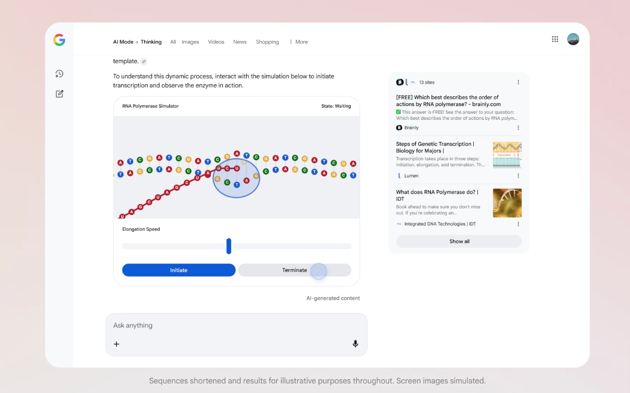 Screenshot of Gemini 3 directly in Google Search’s “AI Mode“