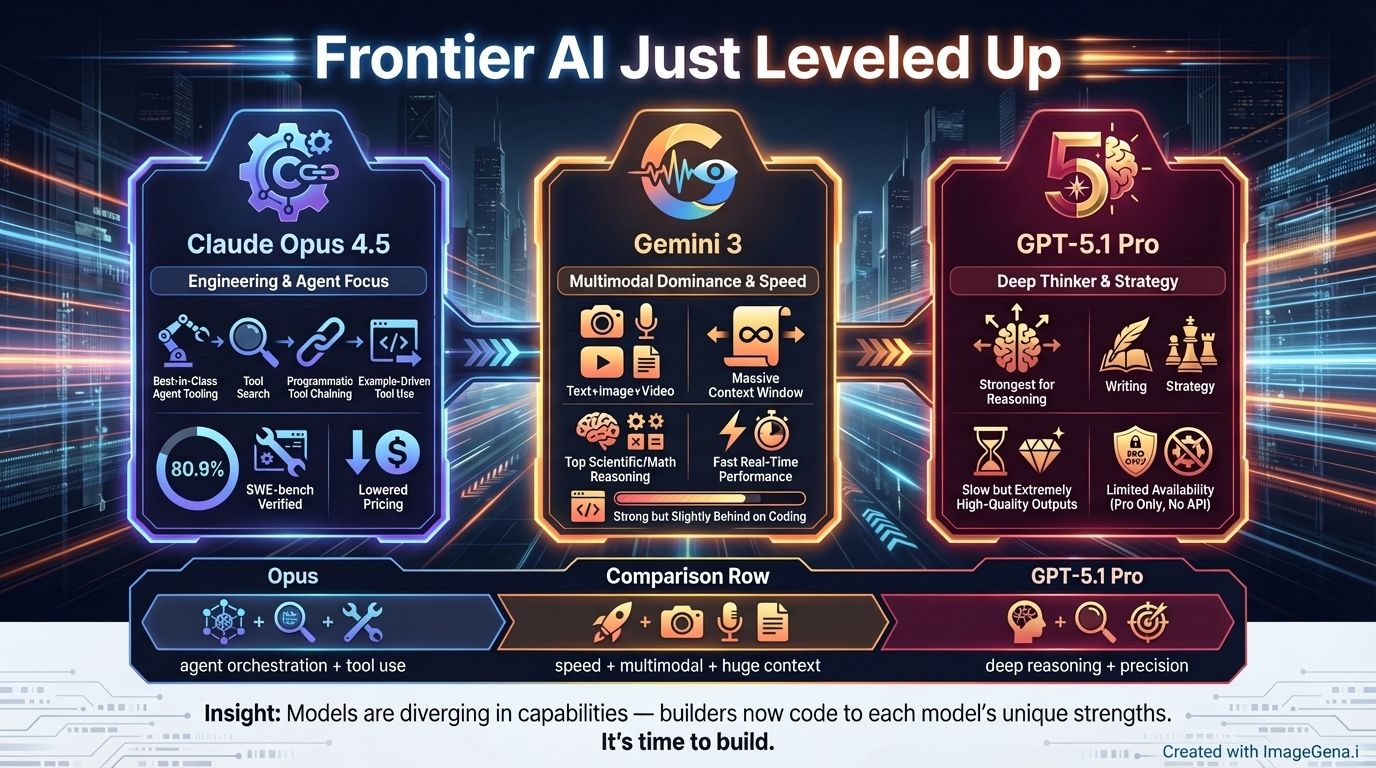 Claude Opus 4.5 is focusing on better agent orchestration and tool use -- making complex agentic workflows more reliable.