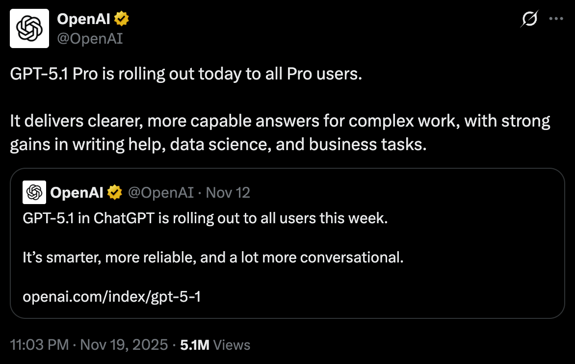 Screenshot from the GPT-5.1 Pro release on Twitter/X